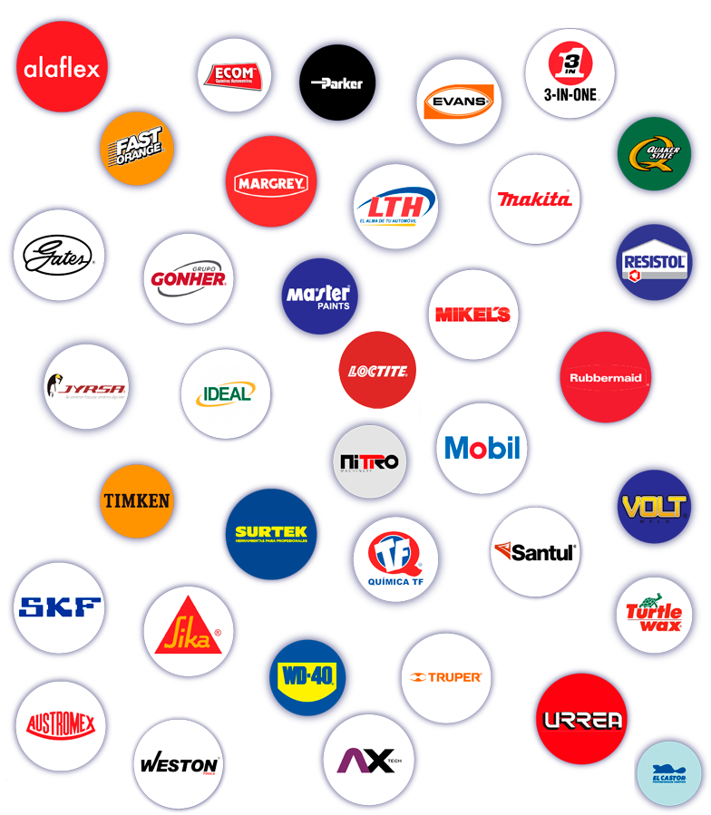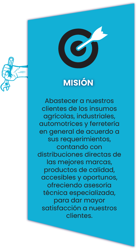 SOMOS DISTRIBUIDORES DIRECTOS DE LAS PRINCIPALES Y MÁS PRESTIGIADAS MARCAS DE PRODUCTOS PARA INSUMOS DE EQUIPOS INDUSTRIALES, MAQUINARIA AGRÍCOLA, EQUIPOS DE TRANSPORTE Y FERRETERÍA EN GENERAL.